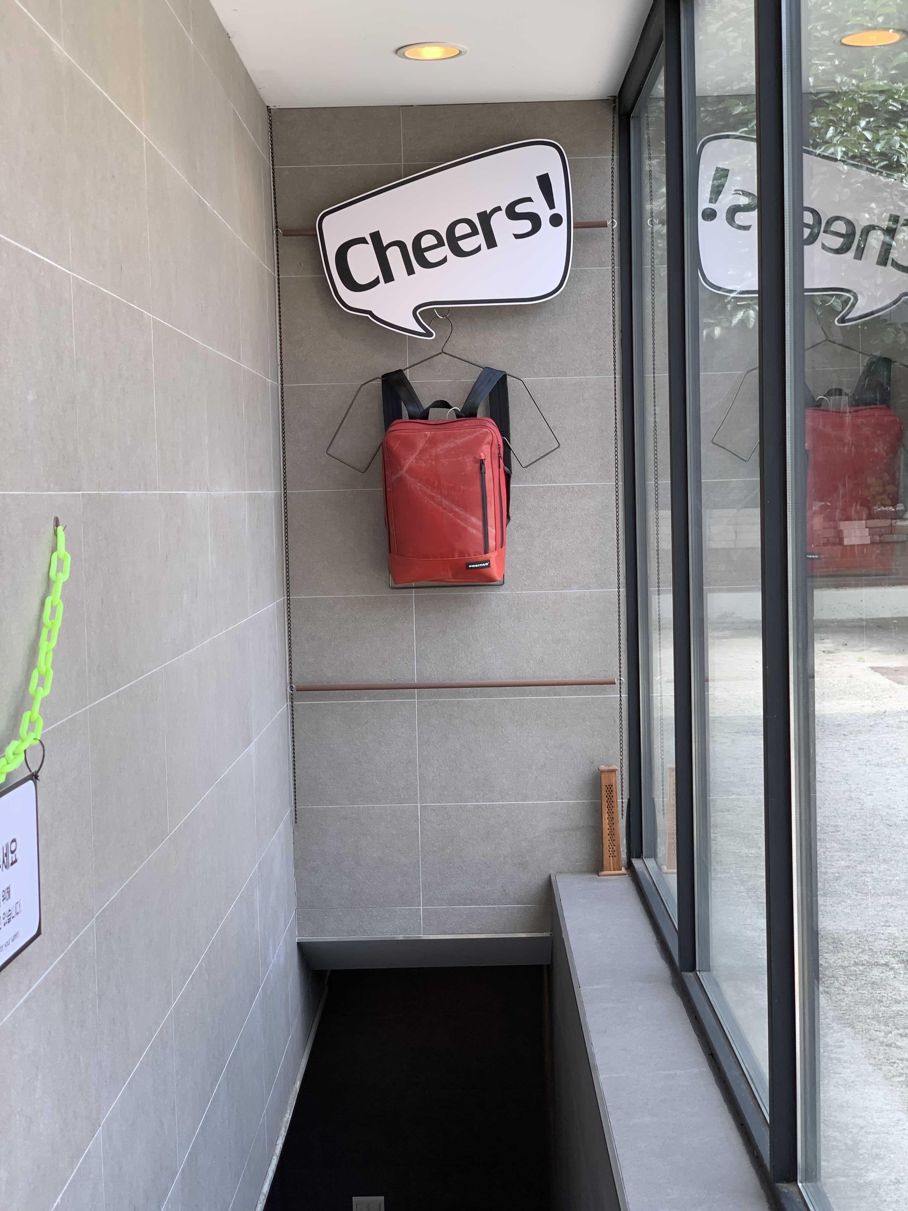 지도에 표시된 곳 근처로 가니, 유리창에 대놓고 프라이탁 가방이 메어져 있더라구요~