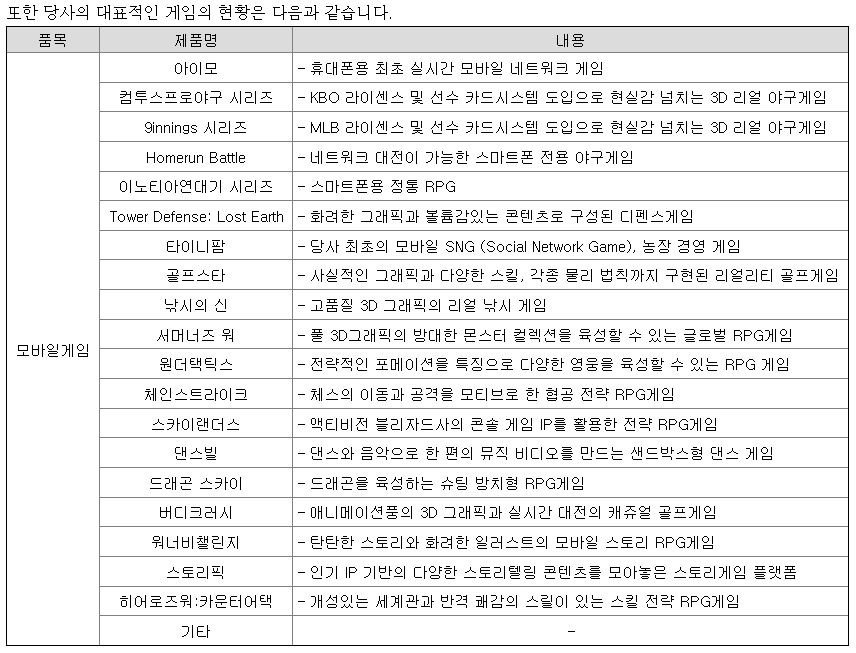 컴투스의 대표적인 게임들로 아래의 게임들을 설명하고 있는데요,