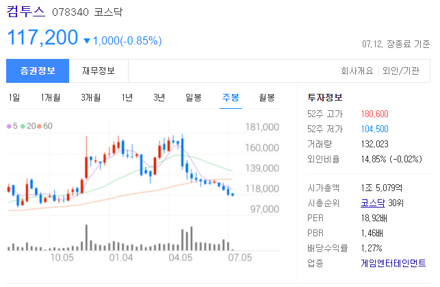 오늘은 게임주, 그 중에서도 컴투스라는 종목에 대해서 말씀 드리려고 합니다.