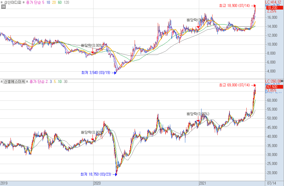 다만, 최근 증설과 관련해서 신흥에스이씨의 주가가 오르는 것으로는 보여집니다.