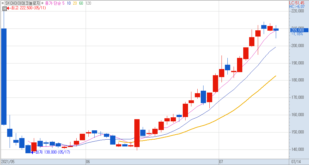 차트를 보시면 전체적으로 최근에는 2차전지 관련 종목들이 많이 상승하는게 눈에 보이네요..