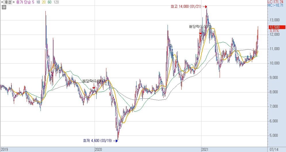 최근 주가 상승 테마로 보았을 때에는 후성에 관심을 가져도 좋지 않을까 싶습니다.