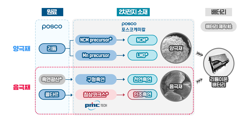 위의 두 그림을 보시면 양극재와 음극재가 어떻게 만들어지는지에 대해서 대략적으로 이해하실 수 있을 겁니다.