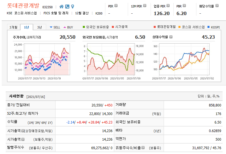 롯데관광개발의 경우 위에서 말씀드린 것 처럼 관광업과 호텔 사업을 같이 하는 업체 입니다.