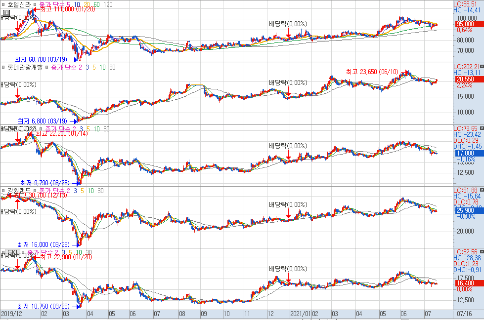 저는 위의 관련주 중에서 호텔/면세/카지노 관련주가 관심을 가져도 좋을 것으로 보이는데요,