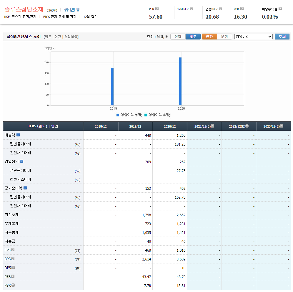 솔루스첨단소재의 경우 PER는 위의 두 업체 대비 낮은 편이나,