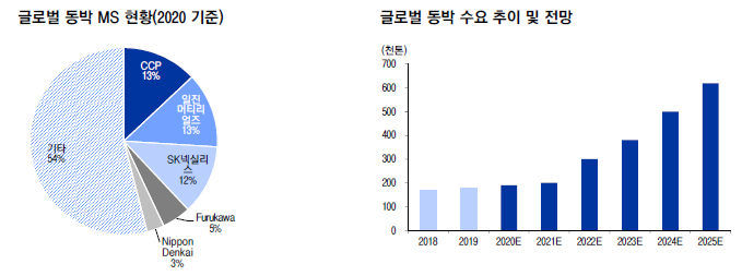 이로 인해 2021년 말 기준 동박 예상 생산량이 연간 약 5만6,000톤으로 예상되고 있습니다.