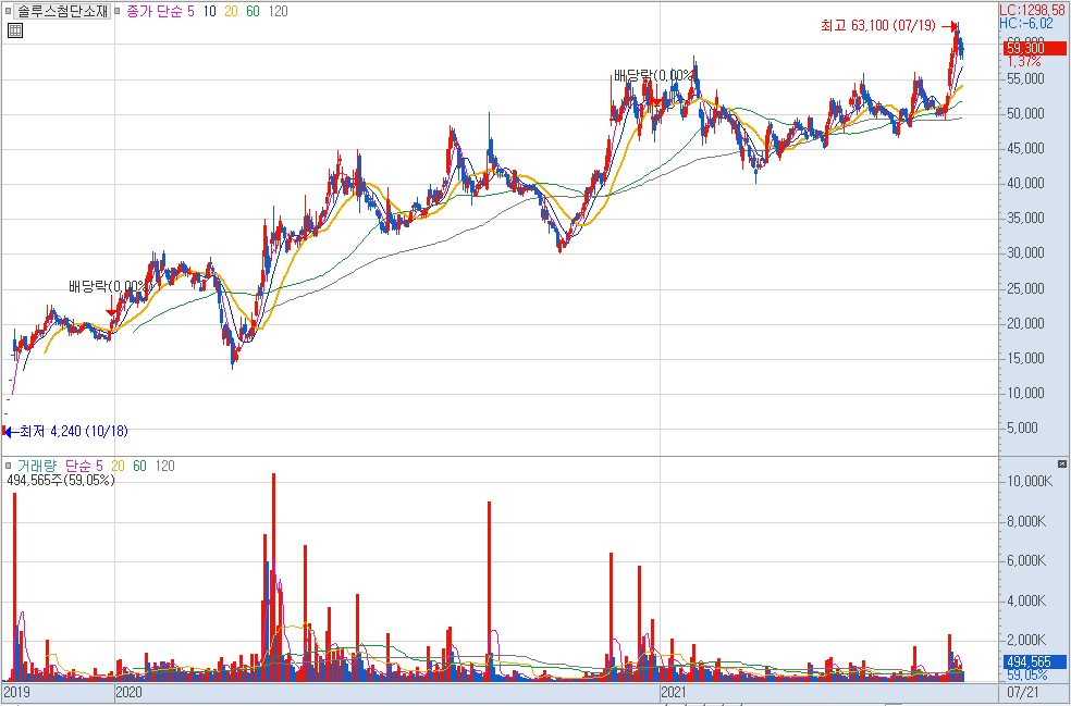 그렇다면 상방이 조금 더 열려있는 종목은 3사 중 솔루스첨단소재라고 생각이 됩니다.