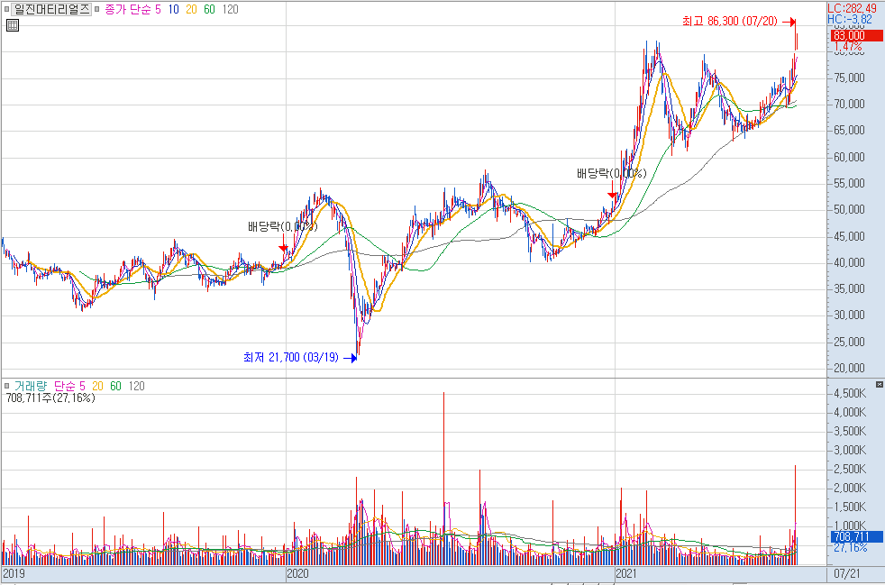 현재 주가에서 일진머티리얼즈의 주식을 매수하시는 것 또한 제 입장에서는 조심스럽긴 합니다..