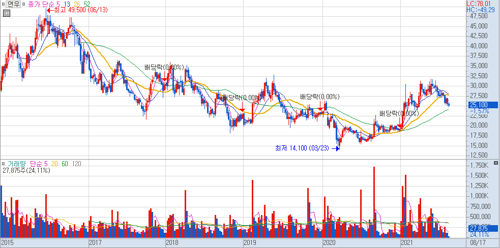 - 연우의 경우 2020년을 제외하고는 2018년 부터 지속적으로 매출액 및 영업이익이 상승중에 있음