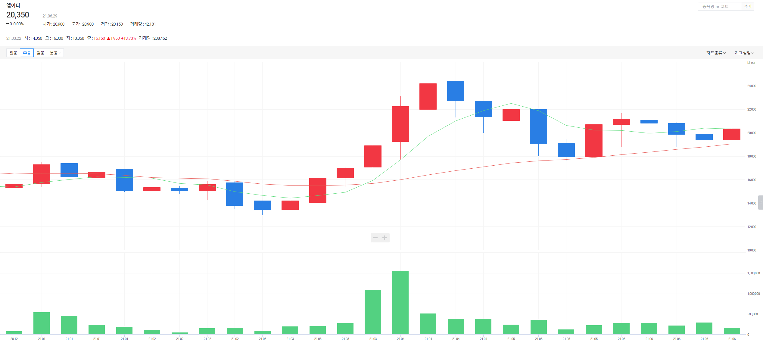 엘이티 주가를 보시면 21년에 크게 상승을 준 뒤 조정 후 횡보하는 모습을 보이고 있습니다.