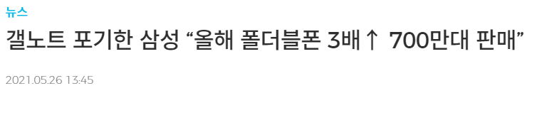 위의 기사를 보시면, 제목과 같이 삼성전자가 갤럭시노트를 포기하고, 올해 폴더블폰 판매량을 3배 이상으로 높이겠다는 뉴스가 있습니다.
