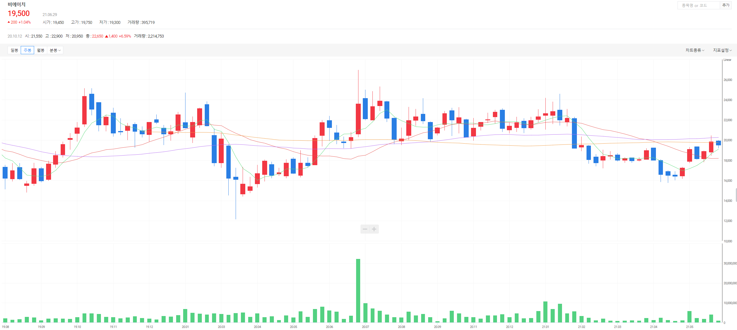 비에이치 주가를 보시면 갤럭시폴드1 출시 시점에서 크게 상승을 준 뒤 지속적으로 하락과 상승을 반복하고 있는 추세 입니다.