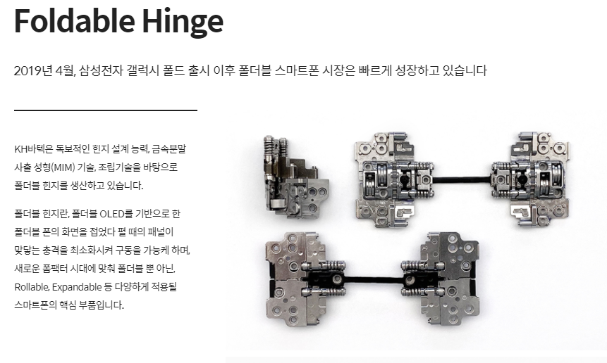 KH바텍의 경우 갤럭시폴드1 때부터 삼성전자제 힌지를 독점 납품해온 업체 입니다.