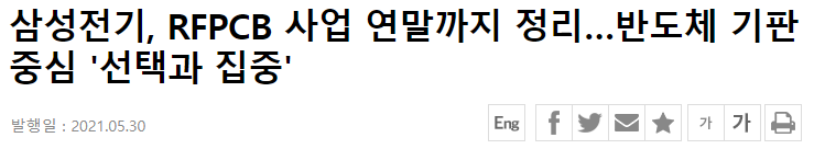 삼성전자향 RFPBC 기판 물량의 약 50 ~ 55% 정도를 비에이치가 납품하고 있고, 나머지를 삼성전기가 납품하고 있습니다.